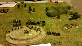 We played the Delay the Enemy scenario, where both sides are fighting to capture a pair of hills, and one side is trying to escape off the board edge, and the other wants to keep them on. As my force was on foot, it only really made sense for them to be the delaying army.
