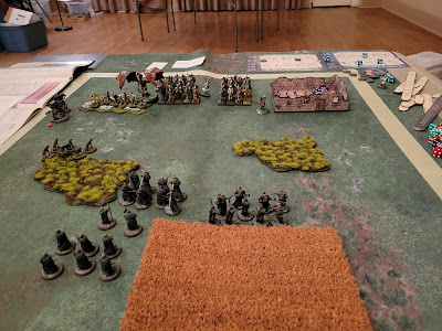 Turn 1 for the humans, they are very limited on dice and the fog obscures the long range shots they would like to make. So just a bit defensive.